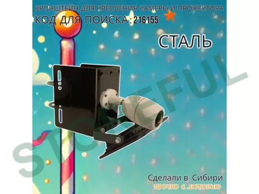 В корзину Купить в 1 клик Кронштейн универсальный на трубу или столб для камеры или прожектора "ПРОЖЕКРЕП-216155" сталь,черный