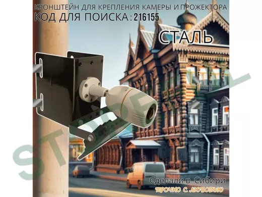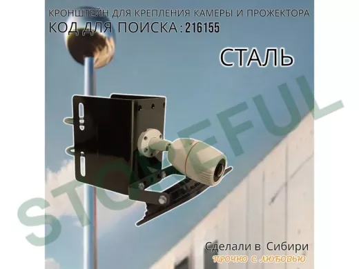Кронштейн универсальный на трубу или столб для камеры или прожектора "ПРОЖЕКРЕП-216155" сталь,черный