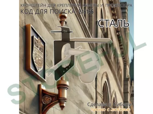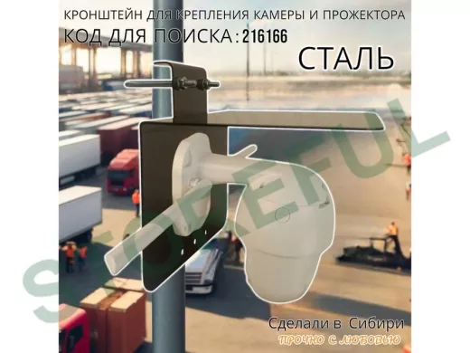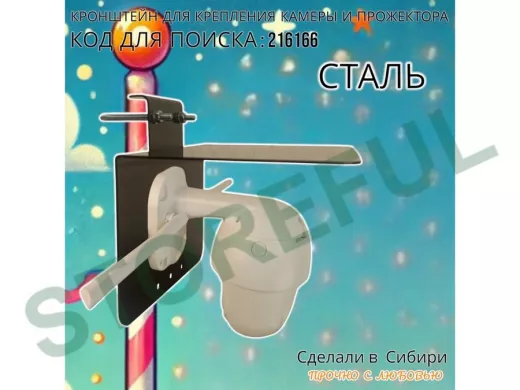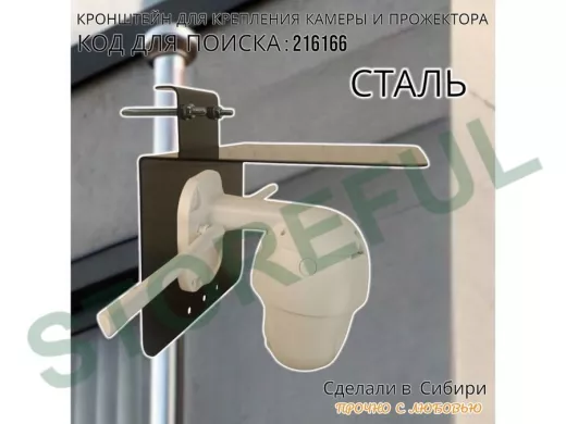 В корзину Купить в 1 клик Кронштейн с козырьком для камеры и прожектора на трубу до 51мм "ПРОЖЕКРЕП-216166" сталь, черный