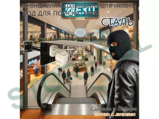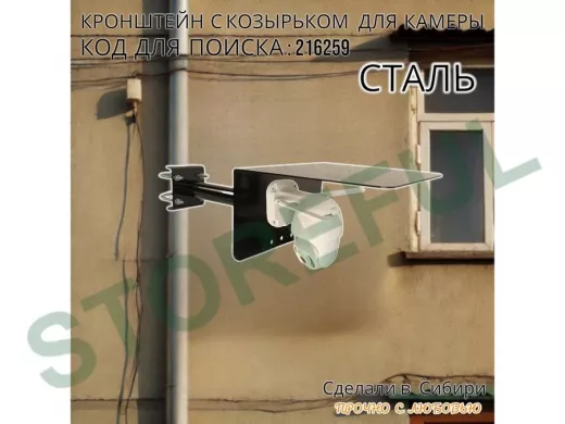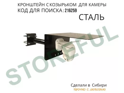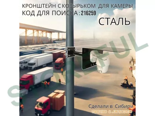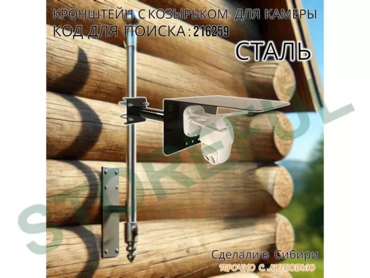 • Универсальный кронштейн с козырьком предназначен для крепления поворотной или цилиндрической камеры и прожектора на трубу.