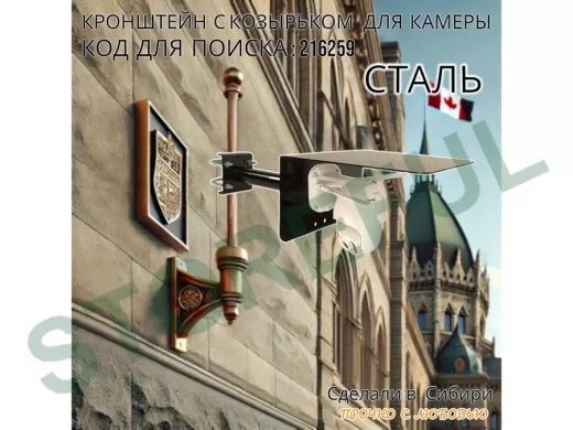Кронштейн с козырьком для видеокамеры на трубу 15...51мм вылет 25см "HIWOLL-216259" чёрный