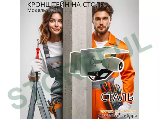 • С данным кронштейном нет необходимости в фиксации дополнительного крепежа под установку   камеры, все крепежные отверстия имеются на кронштейне.