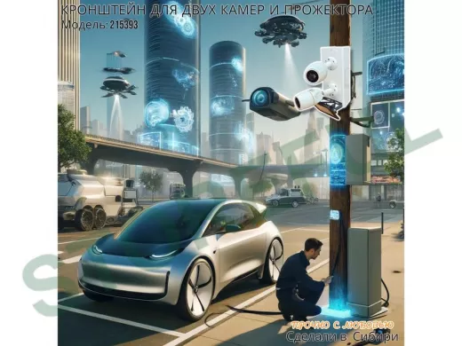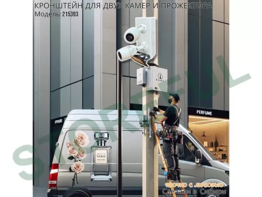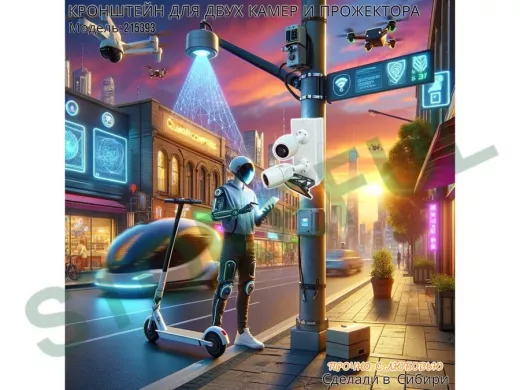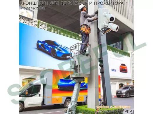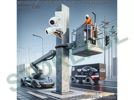 Кронштейн для крепления двух камер и прожектора на столб при помощи СИП - ленты или хомутов