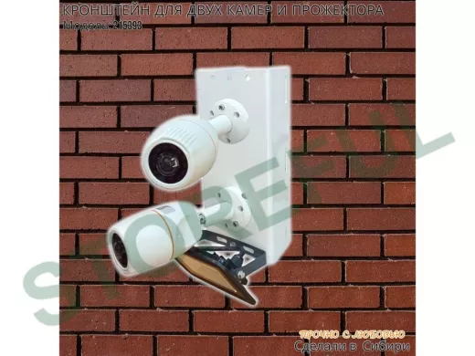 В корзину Купить в 1 клик Кронштейн для двух камер и прожектора на столб белый "IPAHD-201W-215393" под СИП-ленту, вылет 80мм
