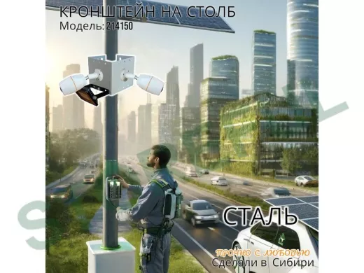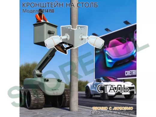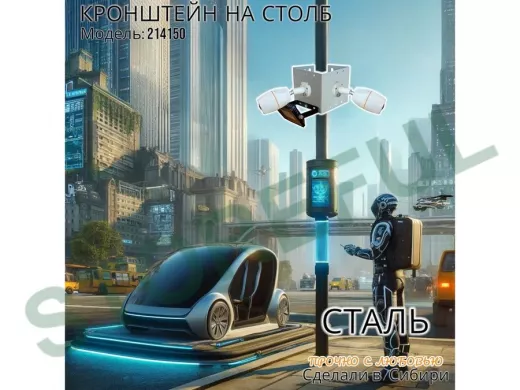 • Кронштейн для двух камер и прожектора, крепится при помощи СИП ленты монтажной на квадратный или круглый столб.