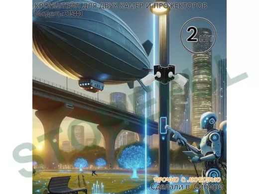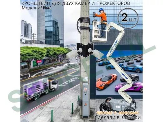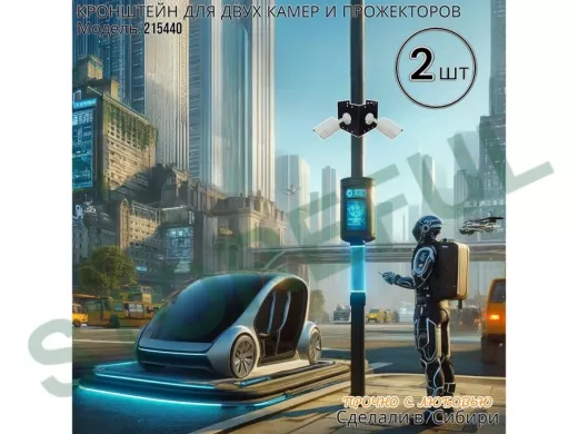 • Кронштейн для двух камер и прожектора, крепится при помощи СИП ленты монтажной на квадратный или круглый столб.