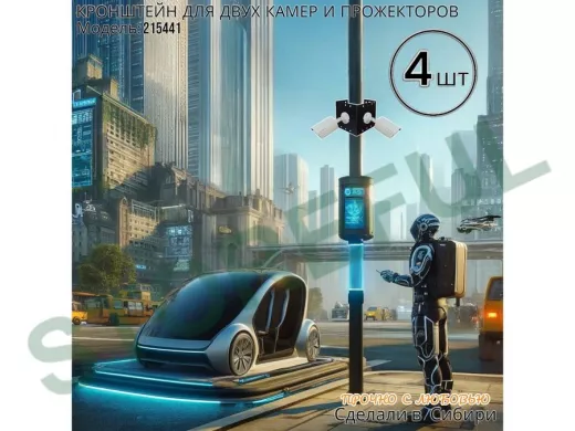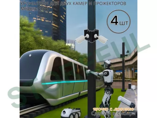 • Кронштейн для двух камер и прожектора, крепится при помощи СИП ленты монтажной на квадратный или круглый столб.