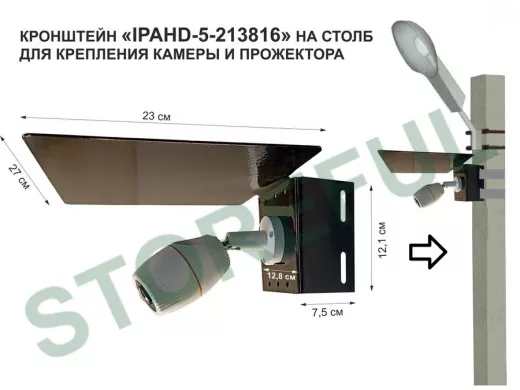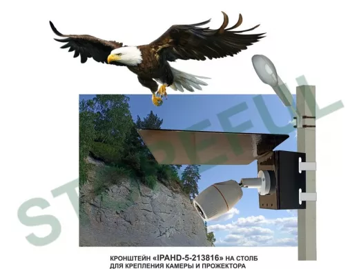 Кронштейн с козырьком  "IPAHD-5-213816"  для камеры и прожектора на столб под СИП- ленту