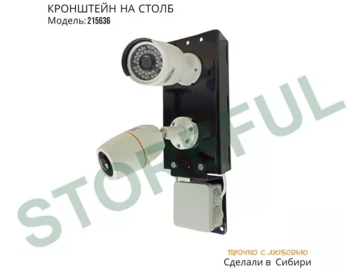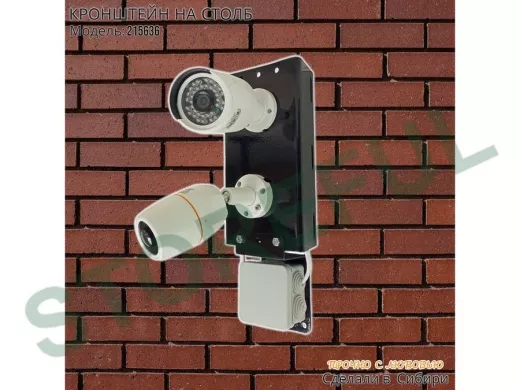 В корзину Купить в 1 клик Кронштейн для двух камер и прожектора на столб с пластиной для гермокоробки черный IPAHD-5-215636