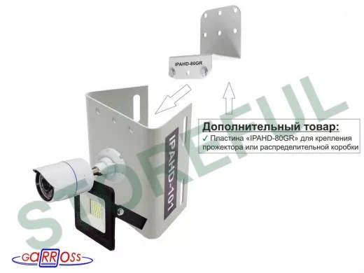 • Кронштейн "IPAHD-STOLB-101S" для 1 камеры и прожектора, крепится при помощи СИП ленты монтажной на квадратный или круглый столб. Подходит для любых камер: HickVision, HiWatch, Dahua, RVI, Орбита и др.