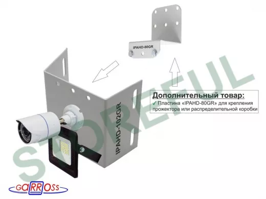 • Кронштейн "IPAHD-STOLB-102GR" для 1 камеры и прожектора, крепится при помощи СИП ленты монтажной на квадратный или круглый столб. Подходит для любых камер: HickVision, HiWatch, Dahua, RVI, Орбита и др.