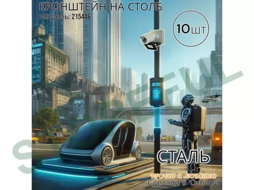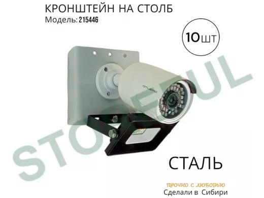 • Кронштейн для 1 камеры и прожектора, крепится при помощи СИП ленты монтажной на квадратный или круглый столб. Подходит для любых камер.