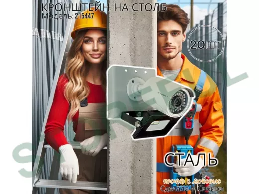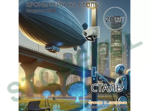 • Кронштейн для 1 камеры и прожектора, крепится при помощи СИП ленты монтажной на квадратный или круглый столб. Подходит для любых камер.