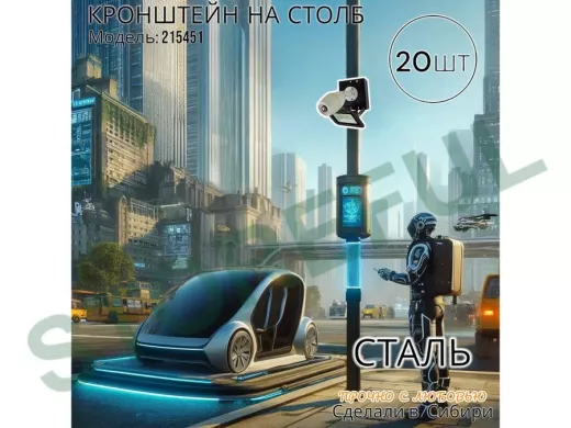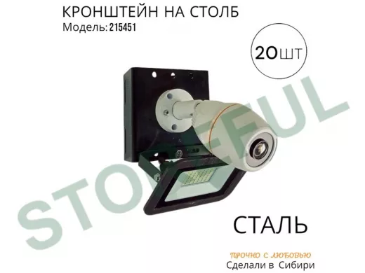 • Кронштейн для 1 камеры и прожектора, крепится при помощи СИП ленты монтажной на квадратный или круглый столб. Подходит для любых камер.