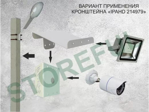 В корзину Купить в 1 клик Кронштейн для камеры и прожектора на столб с козырьком и желобом серый "IPAHD-5-214979"