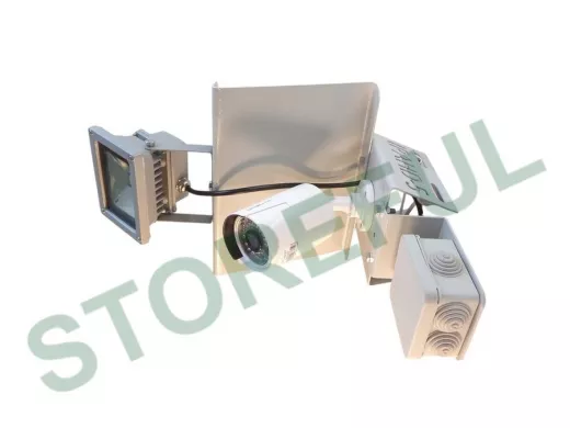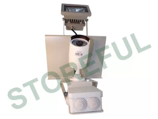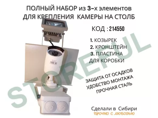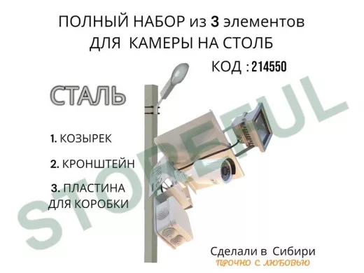 • Конструкция кронштейна позволяет крепить дополнительную опцию в виде разводной коробки, для укладки соединительных электропроводов от камеры и прожектора.