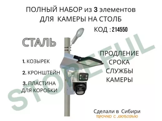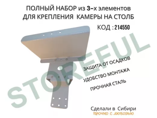 В корзину Купить в 1 клик Кронштейн для камеры и прожектора на столб с козырьком и пластиной серый "IPAHD-5-214550"