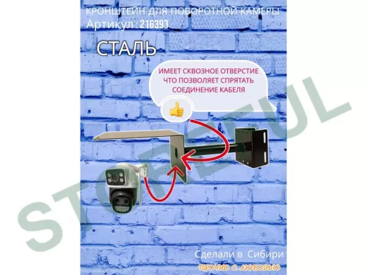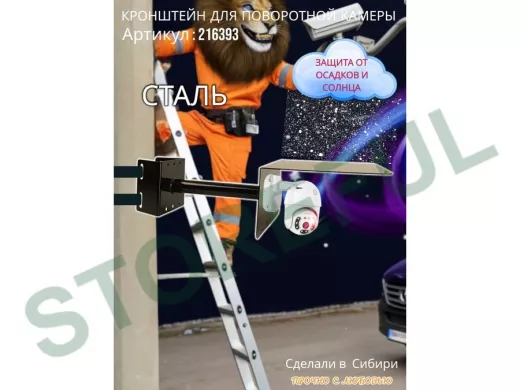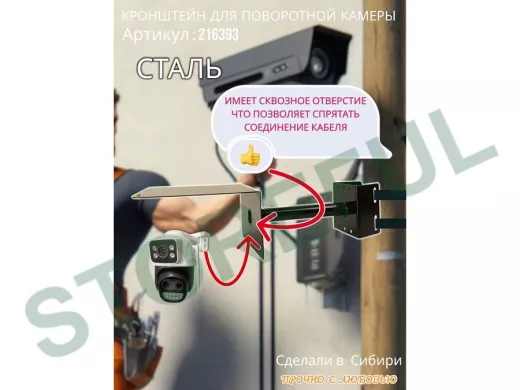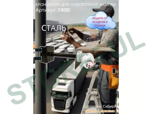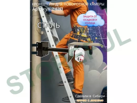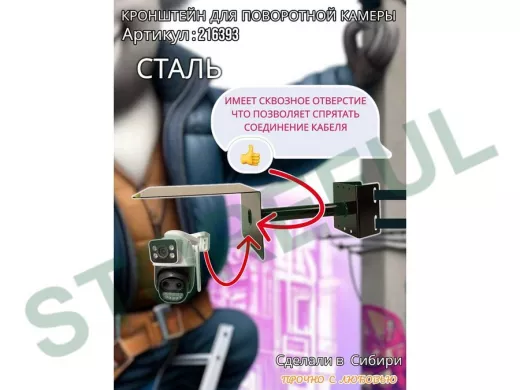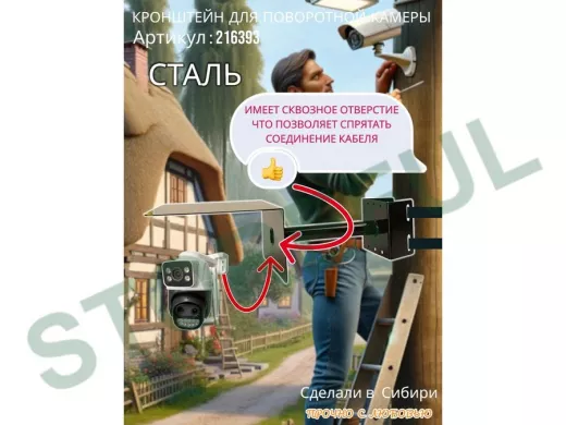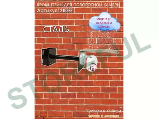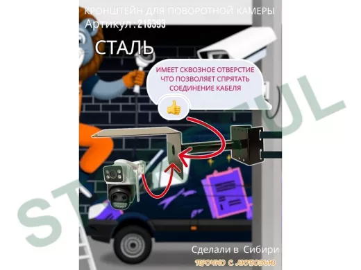 • Стальной кронштейн позволяет вынести камеру от столба на 25 см.