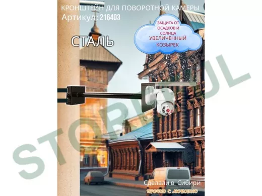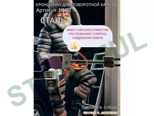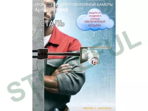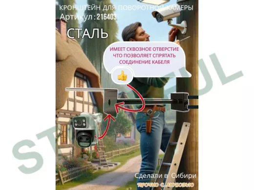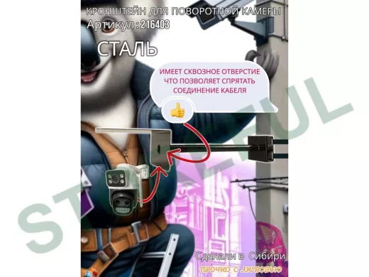 • Стальной кронштейн позволяет вынести камеру от столба на 50 см.