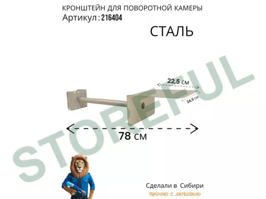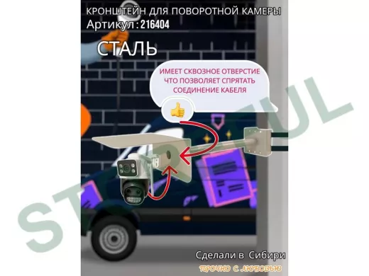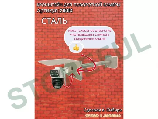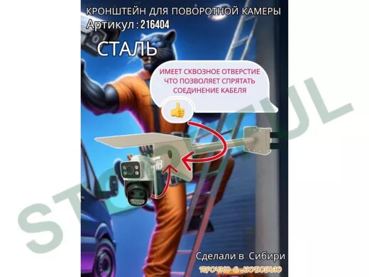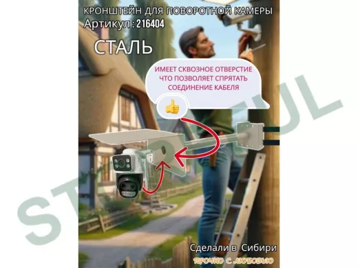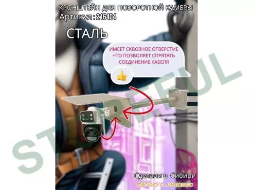• Стальной кронштейн позволяет вынести камеру от столба на 50 см.