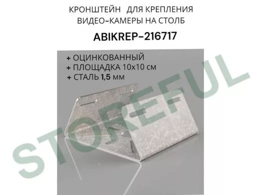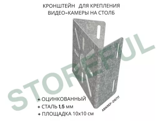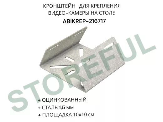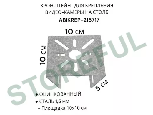 В корзину Купить в 1 клик Кронштейн оцинкованный для камеры на столб "ABIKREP-216717" 100х104мм, сталь, под хомуты, вылет 5см
