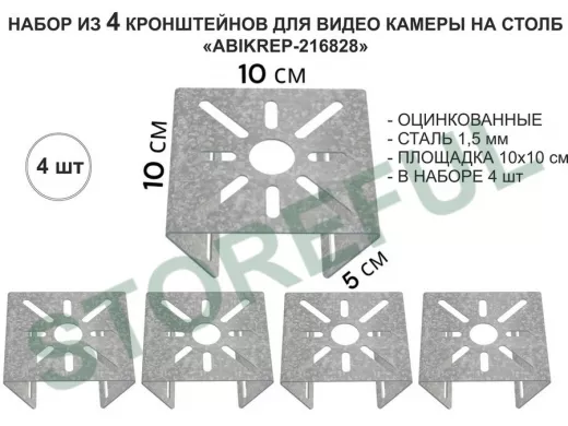 В корзину Купить в 1 клик Набор 4 шт. Кронштейн оцинкованный для камеры на столб "ABIKREP-216828" 100х104мм,сталь, под хомуты