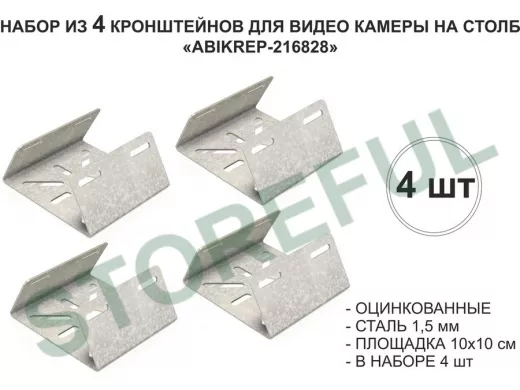 Набор 4 шт. Кронштейн оцинкованный для камеры на столб "ABIKREP-216828" 100х104мм,сталь, под хомуты