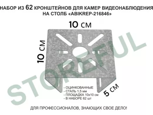 В корзину Купить в 1 клик Набор 62 шт. Кронштейн оцинкованный для камеры на столб "ABIKREP-216846" 100х104мм, сталь,под хомуты