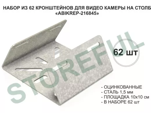 Набор 62 шт. Кронштейн оцинкованный для камеры на столб "ABIKREP-216846" 100х104мм, сталь,под хомуты