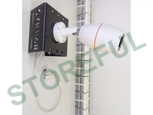 • Конструкция кронштейна позволяет крепить дополнительную опцию в виде разводной коробки, для укладки соединительных электропроводов от камеры и прожектора.