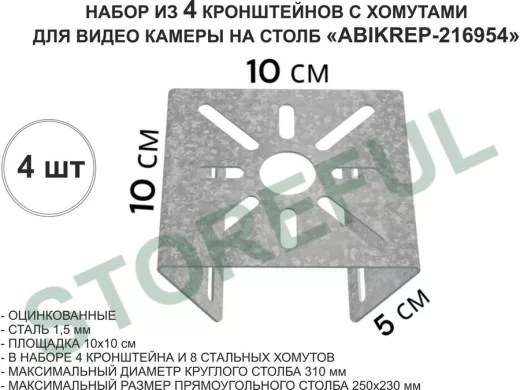 Набор 4шт. Кронштейн оцинкованный для камеры наблюдения с хомутами на столб "ABIKREP-216954"