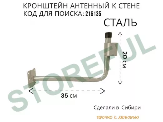 В корзину Купить в 1 клик Кронштейн антенный стальной "СИГНАЛ-350-216135" серый вылет 0,35 м, труба 22мм с кольцом 50мм