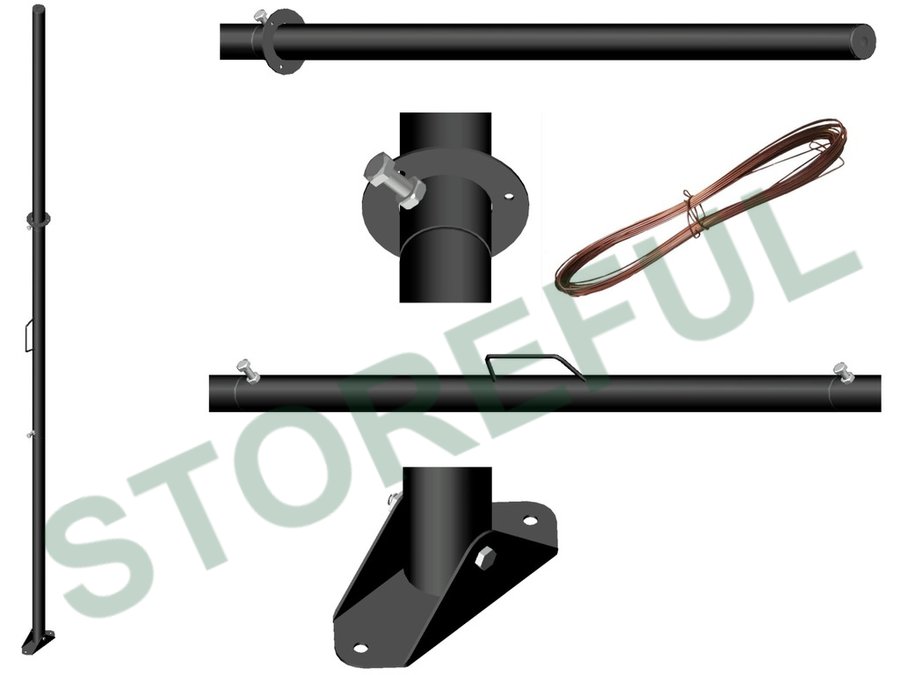 • В комплекте мачты: три трубы диаметром 50мм, подпятник и проволочные растяжки