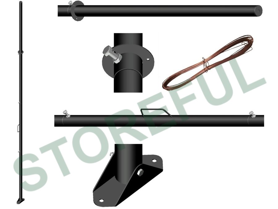 • "МАЧТА  УСИЛЕННАЯ - 4,5М С РУЧКОЙ" ЧЁРНАЯ (с растяжкам и подпятником) мачта высотой 4,5 метра предназначена для крепления антенных комплексов или нескольких антенн с увеличенной полезной нагрузкой на наклонной и плоской крыше