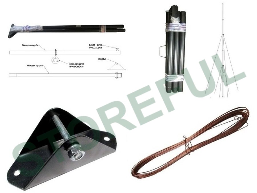 • В комплекте мачты: три трубы диаметром 50мм, подпятник и проволочные растяжки