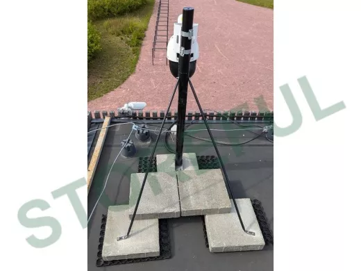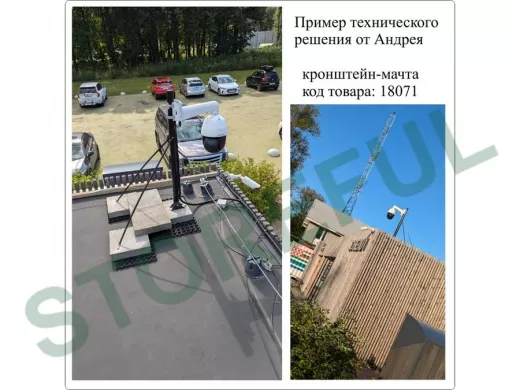 - Наличие жёстких растяжек в виде трубок и качающегося основания позволяют крепить кронштейн-мачту на кровле с различным наклоном.