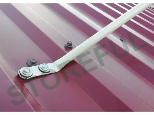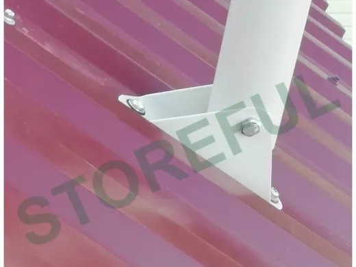 - Для крепления используются два отверстия в подпятнике и по одному отверстию в каждой растяжке. Удобно использовать кровельные саморезы максимального диаметра и длины, чтобы обеспечить надёжность фиксации.