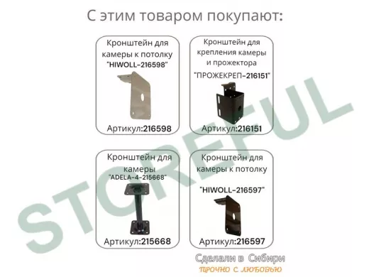 В корзину Купить в 1 клик Кронштейн для поворотной камеры к потолку усиленный "HIWOLL-216602" черный, сталь