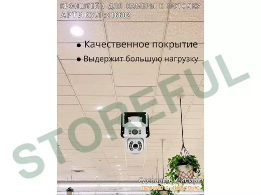 • Закрепить камеру к потолку можно в офисе,магазине,дома,торговом центре.