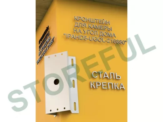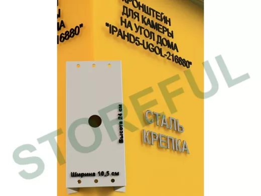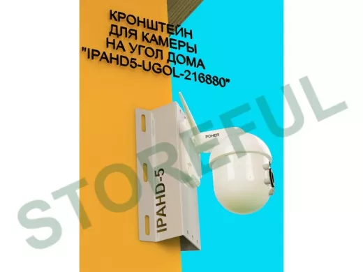 Кронштейн угловой металлический для камеры видеонаблюдения "IPAHD5-UGOL-216880". Подходит для большинства типов видеокамер: цилиндрических, купольных или поворотных