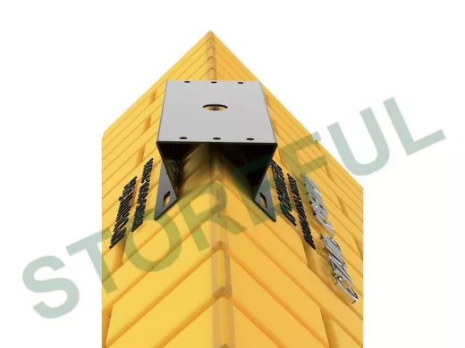 • Кронштейн надежно крепится при помощи четырех шурупов-глухарей и дюбелей (входит в комплект) на угол дома.