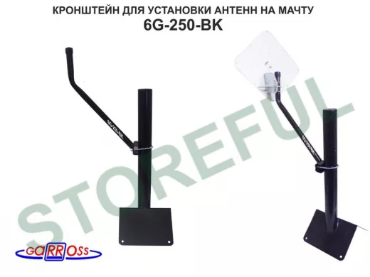 В корзину Купить в 1 клик Кронштейн антенный "6G-250-BK" ЧЁРНЫЙ с выносом вверх 0,45м, вылет 0,25м,с хомутом на трубу до 51мм