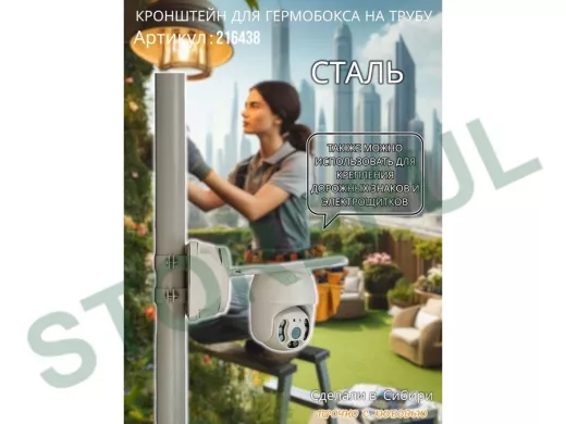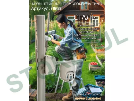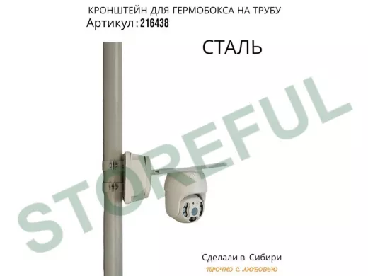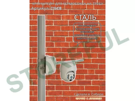 • Кронштейн позволяет быстро зафиксировать гермобокс с видеокамерой на трубу.