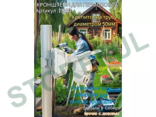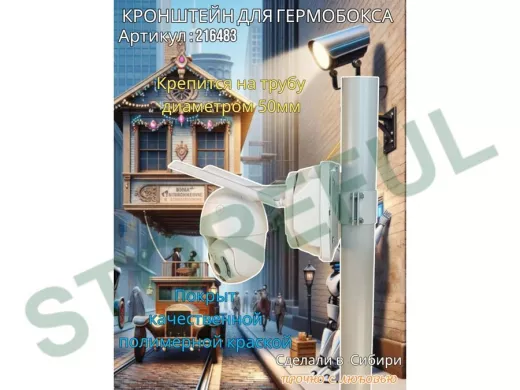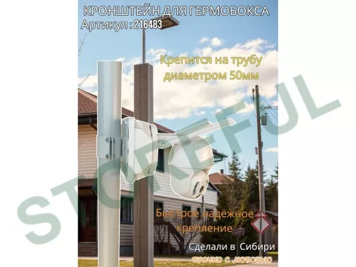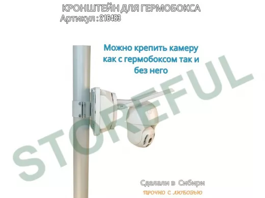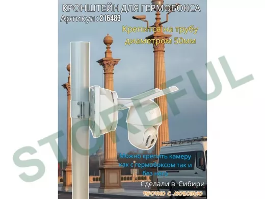 • Кронштейн позволяет быстро зафиксировать гермобокс с видеокамерой на трубу.