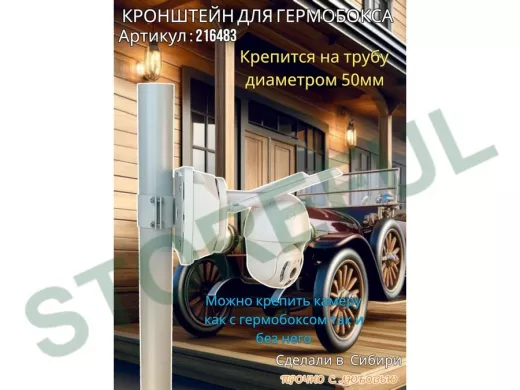• Универсальный усиленный кронштейн предназначен для крепления гермобоксов,коробок с видеокамерой, дорожных знаков ,электрощитков на трубе диаметром 50мм.