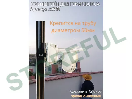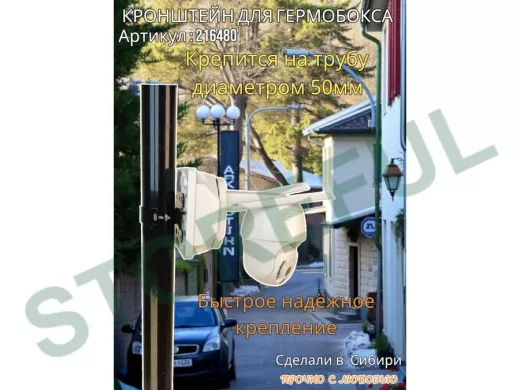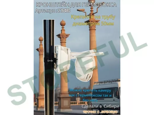 • Кронштейн позволяет быстро зафиксировать гермобокс с видеокамерой на трубу.