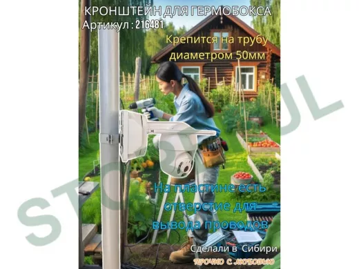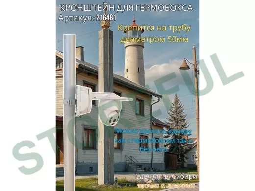 • Кронштейн позволяет быстро зафиксировать гермобокс с видеокамерой на трубу.