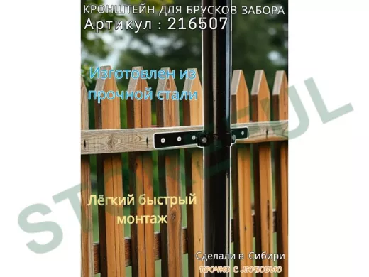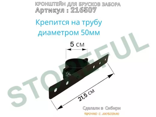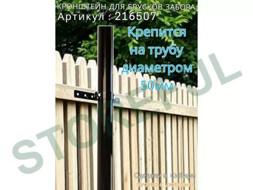 Кронштейн для крепления брусков забора на трубу диаметром 50мм "PODPORA-216507" сталь, цвет черный