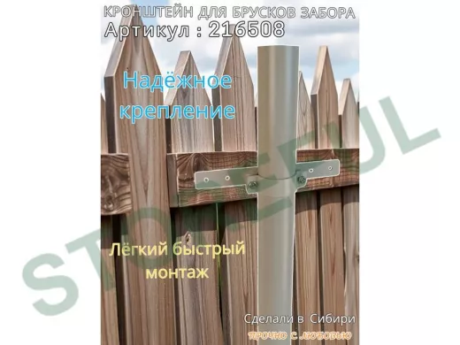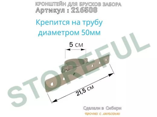 В корзину Купить в 1 клик Кронштейн для крепления брусков забора на трубу диаметром 50мм "PODPORA-216508" сталь, цвет серый