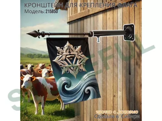 Кронштейн для крепления одного флага на стене угол 90гр вылет 25см "ФЛАГОКРЕП-215850" сталь, черный